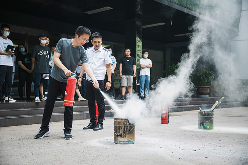 培訓(xùn)結(jié)束后,參加培訓(xùn)的職工在于教員指導(dǎo)下進行了滅火演練。
