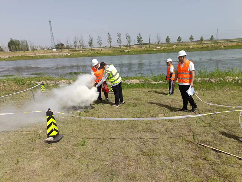 模擬設(shè)備起火現(xiàn)場,開展滅火動(dòng)作,并講滅火器使用方法,介紹噴射要領(lǐng),滅火動(dòng)作后觀察火情是否復(fù)燃;