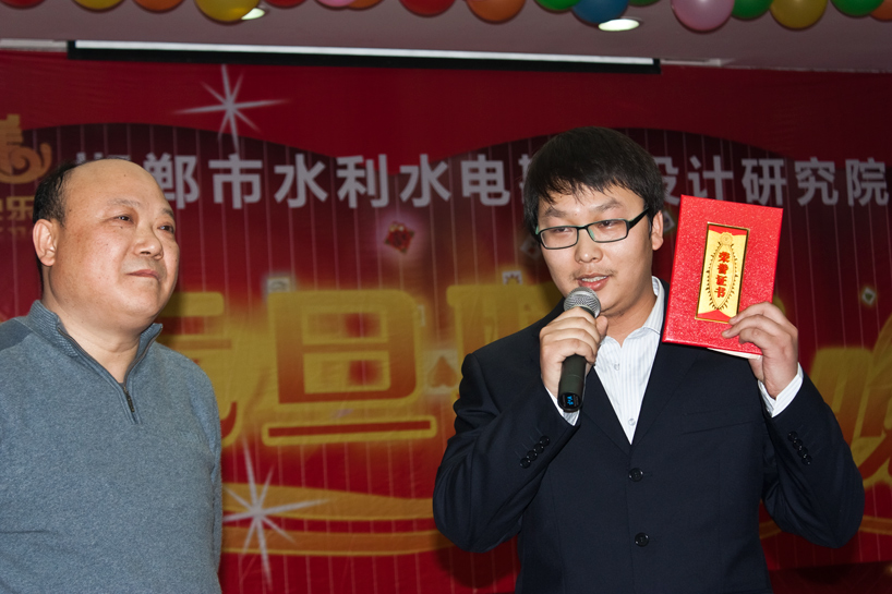 張院長為榮獲院新人獎的趙金鵬通知頒獎。趙金鵬同志于2010年7月進入設(shè)計院規(guī)劃處工作至今。他填補了院內(nèi)景觀效果圖設(shè)計的空白。在工作中,從開始摸索著做效果圖,到現(xiàn)在一天可以做出兩張不同方案的效果圖,他一直刻苦鉆研著專業(yè)技能。毫無保留的傳幫帶其他同事涉足此領(lǐng)域以滿足院內(nèi)對此方面工作的需要。他對待工作勤勤懇懇,2011年春節(jié)前,因為工作需要,已經(jīng)返回家中的他二話不說又返回單位加班加點,直到臘月30才回到家中。他平時還積極參加院里各種勞動、公益活動和文藝活動,是一位很快進入工作角色,在本崗位做出突出貢獻的一個新人,是一個熱心助人,工作踏實的好同事好員工。