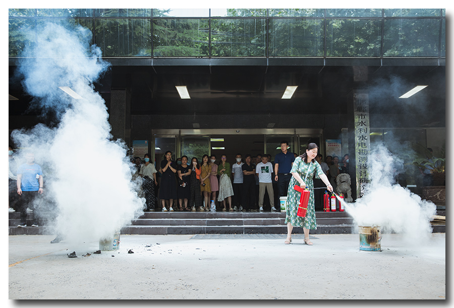本次活動分為兩個階段:一是普及消防安全知識。院綜合部靳冬魁同志在設(shè)計院樓前向職工講解消防注意事項、消防器材使用方法、火災(zāi)報警流程等安全知識,提高了員工安全防范意識。二是滅火實戰(zhàn)演練。現(xiàn)場職工分別用干粉滅火器、二氧化碳滅火器進行滅火,迅速將明火進行撲滅,提升了實際操作能力。